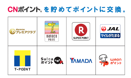 | 各社のポイントと交換可能 ※CNポイントを貯めてポイント交換 |